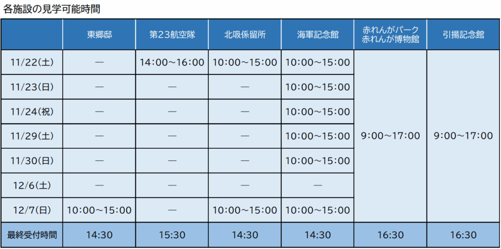 ■自衛隊施設の見学可能日カレンダー